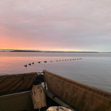 Your hunt will start early as these birds start moving right after legal shooting (1/2hr before sunrise) Meet us at the launch and we’ll boat out to our destination. Once the decoys are in the water, we set the blind, load the guns, and wait for the action!
